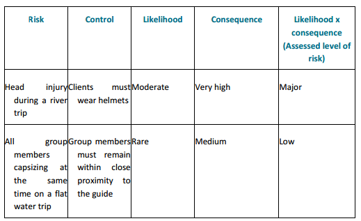 For example, in a flatwater paddle situation a qualitative risk analysis would be ‘moderate’ for the risk of a shoulder injury to a novice paddler when an adequate warm up had not taken place. For an experienced paddler with a warm up, the risk of a shoulder injury would be ‘low’.